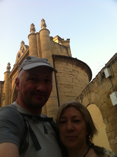 Menos mal que la mañana discurre todavía templada, con unos paisajes maravillosos, y Lurdes me ayuda a cambiar de humor. El trayecto hasta Viana sigue sin otros incidentes dignos de mención, y entramos en la ciudad del Principe de Navarra a eso de las once. Han sido diecinueve kilómetros francamente agradables, todavía no hace demasiado calor y el rodaje se va notando: apenas estamos cansados y tenemos los pies en buenas condiciones. El albergue abre a las doce, así que nos tomamos una cervecita esperando. Luego ducha, colada, paseíto y comida, un magnífico menú peregrino por 9’50 €. A la hora de la siesta el sol brilla en todo su esplendor, y no hay quien pare. Nos levantamos y paseamos por la ciudad. Y paseamos. Y otra vez, jeje.