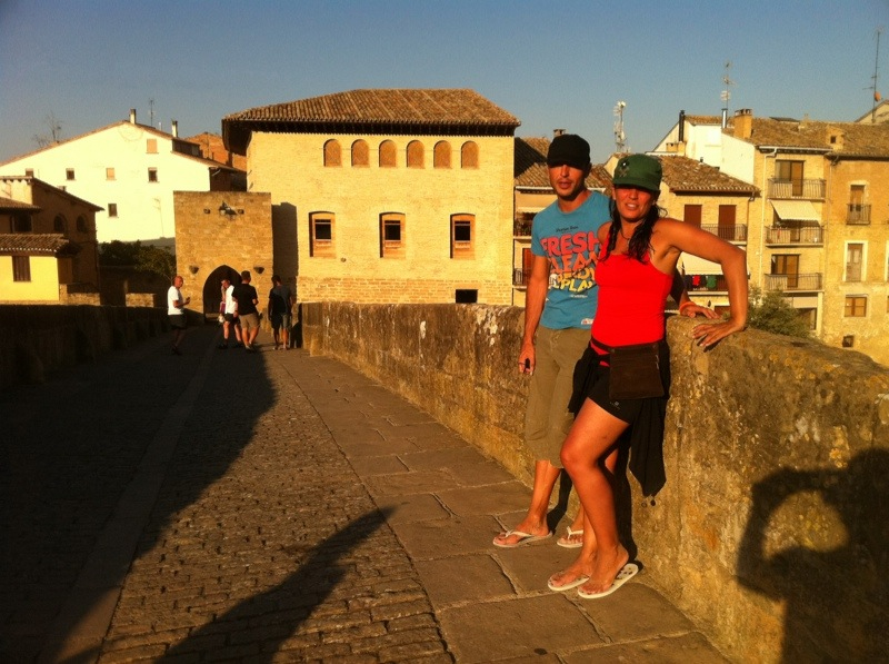 David y Anna (con dos enes), en Puentelarreina. Creo que ambos se dedicaban, o al menos eran muy aficionados a algún deporte o actividad física. Ella estiraba concienzudamente antes y después de andar. En todo caso, era un placer encontrarse con ellos, educados y cariñosos.
