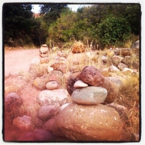 Pasamos junto a Sotés, y luego el camino se bifurca. Lurdes prefiere seguir derecha hacia Nájera, y yo tomo el desvío a Ventosa, unos seis kilómetros más. No me arrepiento. Me gusta andar un rato a buen ritmo, y Ventosa es un pueblito riojano muy coqueto, con su iglesia románica en un pequeño alto, un bar preparado para atender a los peregrinos y unas preciosas vistas sobre el océano verde de los viñedos. Todavía es pronto para hacer un segundo desayuno, así que saludo a un par de peregrinos que he visto antes en el camino y continúo. No pasa mucho tiempo hasta que, al iniciar la bajada de un pequeño alto, me reencuentro con Lurdes, sentada junto al camino y saboreando el bocadillo que compramos ayer. Me uno al banquete, que ahora sí que apetece.