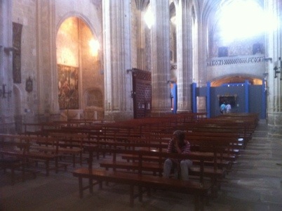 La iglesia del convento es pequeña y relativamente moderna. Se está fresco, al menos en comparación con los treinta y pico grados que deber hacer en el exterior. Presa de uno de sus arrebatos de misticismo, Lurdes quiere quedarse al rosario y la misa. Vale, te espero fuera. Hace calor, pero es que no me parece bien ponerme a enredar con el teléfono mientras los demás rezan.