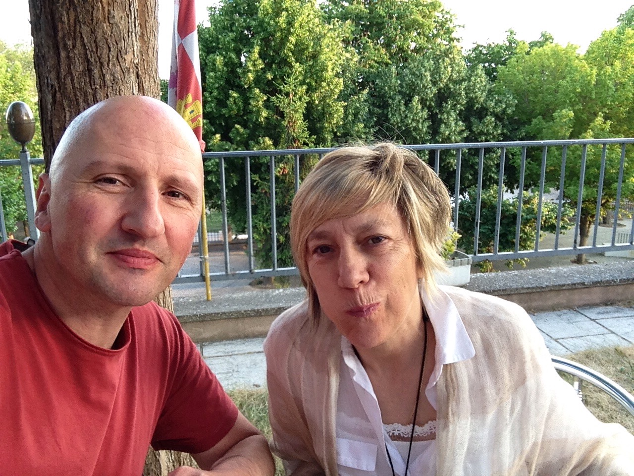 Después de hacer la visita a la casa y tomar posesión de la habitación, salimos a dar una vuelta por el pueblo y cenamos en el jardín de Iacobus, un menú peregrino rodeados de la habitual mezcolanza cultural del camino: alemanes bullangueros, coreanos tímidos, rubicundas nórdicas, espigados estadounidenses…