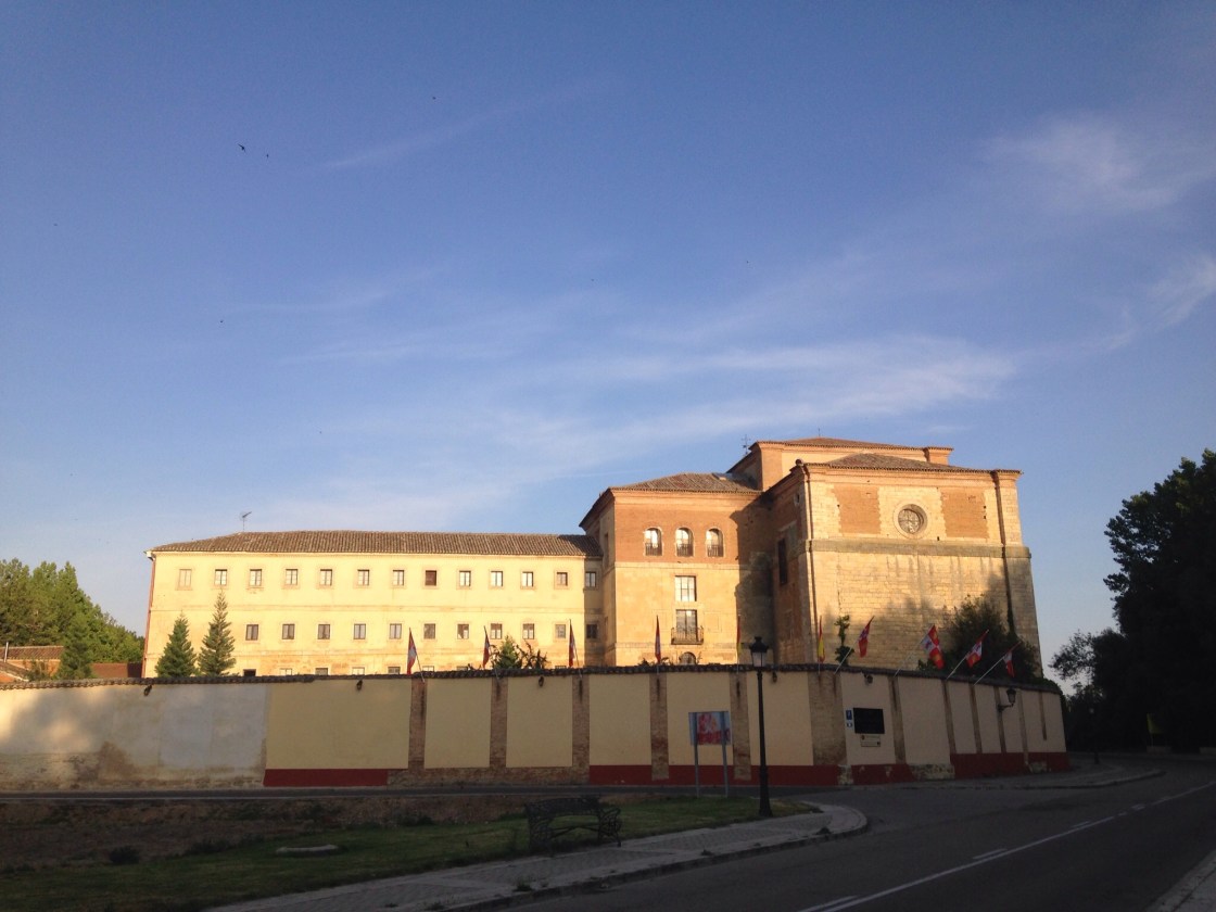 Andando, andando, nos salimos del pueblo y llegamos al monasterio de San Zoilo. A ver si nos dejan ver el claustro… Pues no hay suerte, hoy está cerrado. Bueno, no importa. ¿Y si nos quedamos a cenar, ya que estamos aquí? Después de todo, son ya más de las ocho y media. Hecho, nos quedamos.