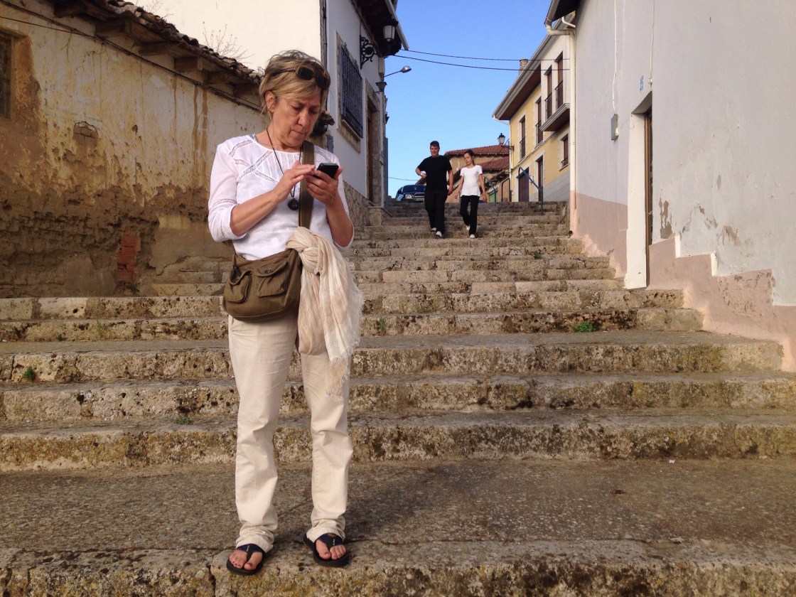 A las siete y media ya ha salido el sol. Otra vez estoy nervioso y tardo un buen rato en prepararme. Ayer dejé las botas en el coche; eso significa que tengo que bajar a por ellas y luego volver a subir para dejarle las llaves a Lurdes, que duerme plácidamente. No contento con eso, al volver me doy cuenta de que me he dejado también en el coche las tiritas para las ampollas y la chaqueta. Me toca bajar y subir otra vez. Estoy tonto…